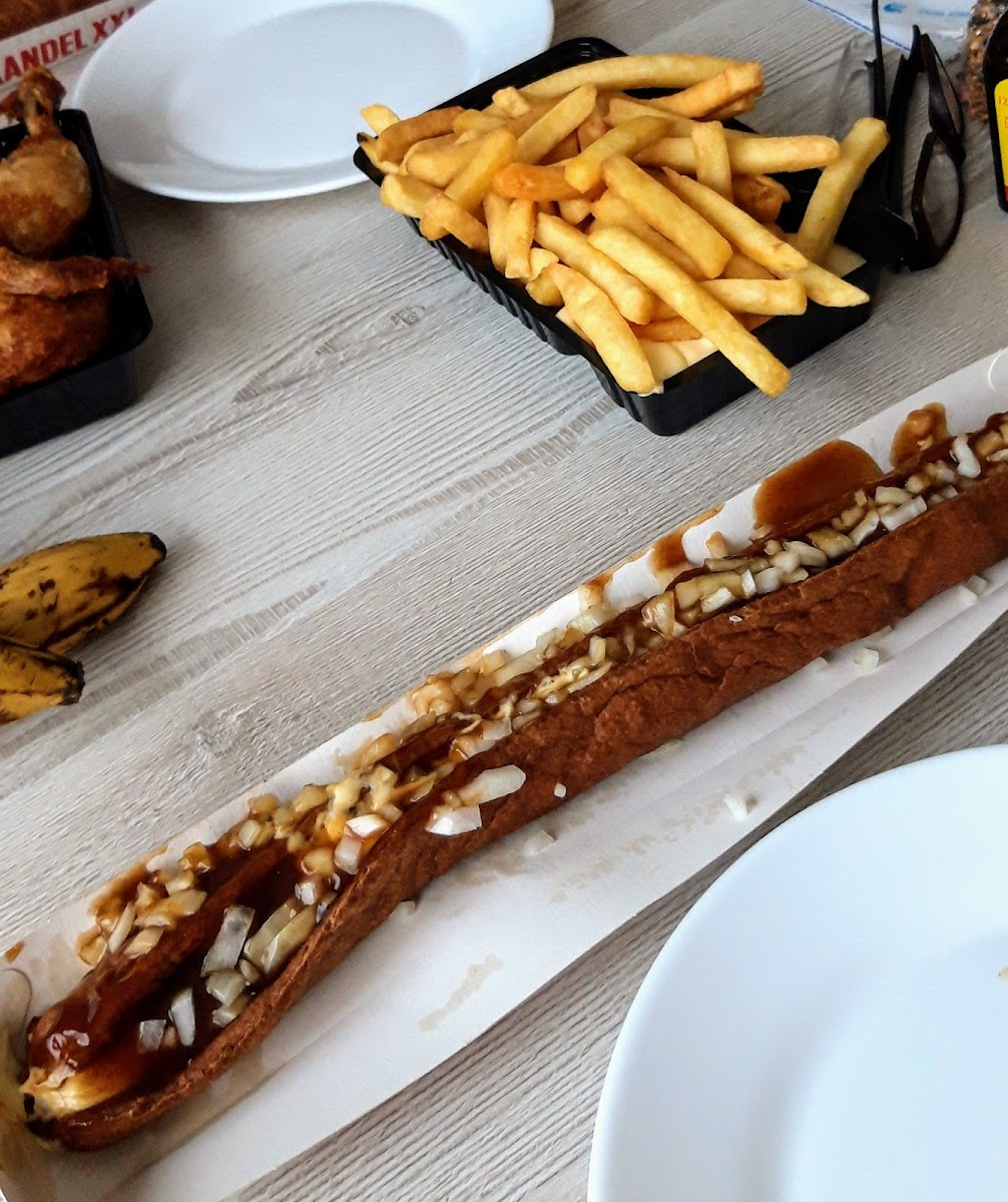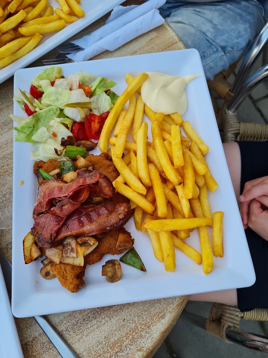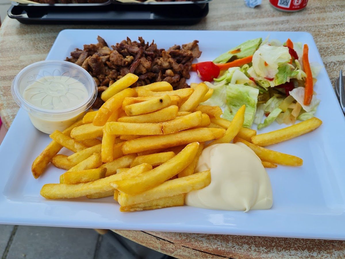 The menu centers around classic Dutch snack bar fare, with highlights like patat and the local favorite, the eierbal. Other options such as the XXL frikandel and schnitzel with mushroom, onion, and bacon provide hearty portions without fuss. The shoarma schotel and kipsaté menu stand out for their value, often accompanied by a drink for around €10, which makes it an easy choice for a filling meal on a budget.